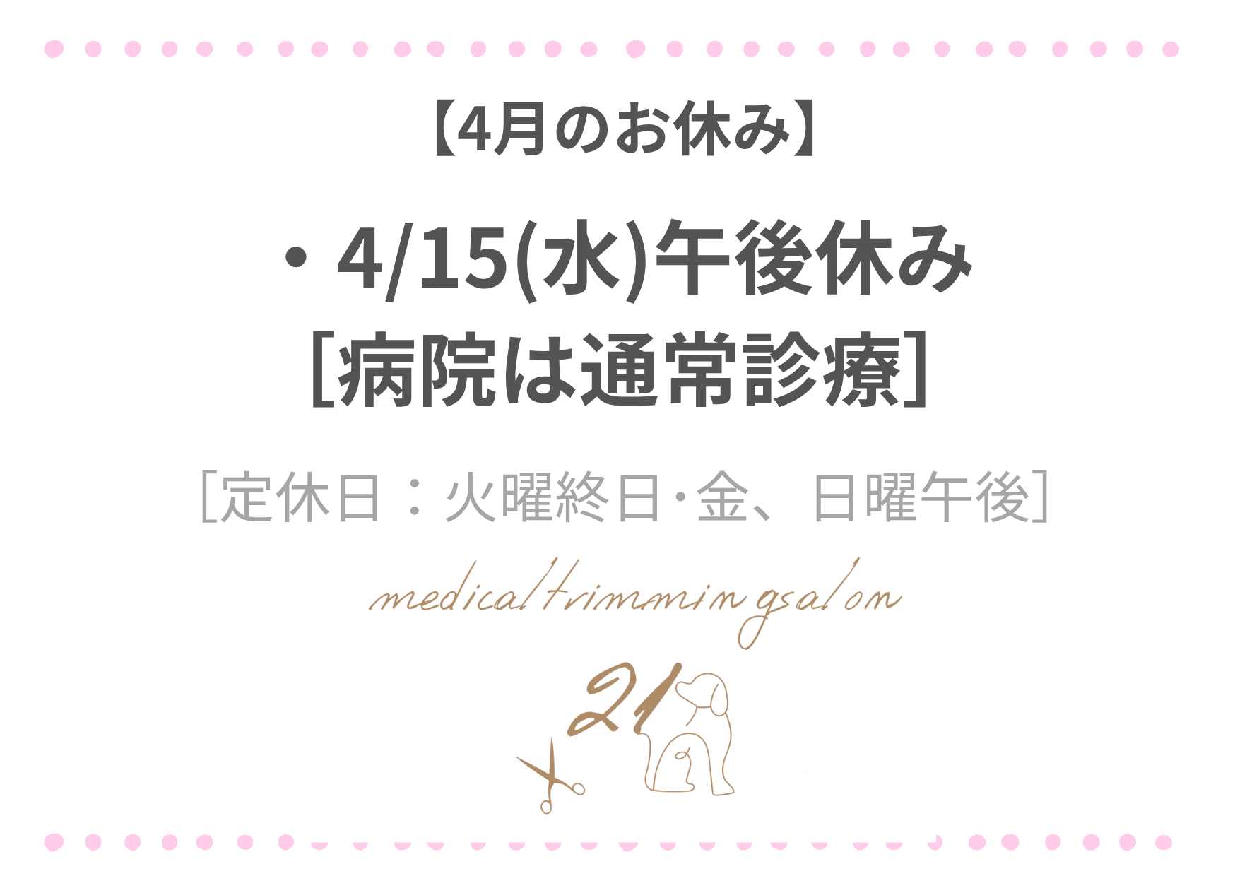 ・4/15(水)午後休み[病院は通常診療です🏥]